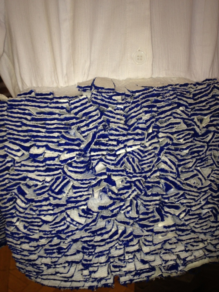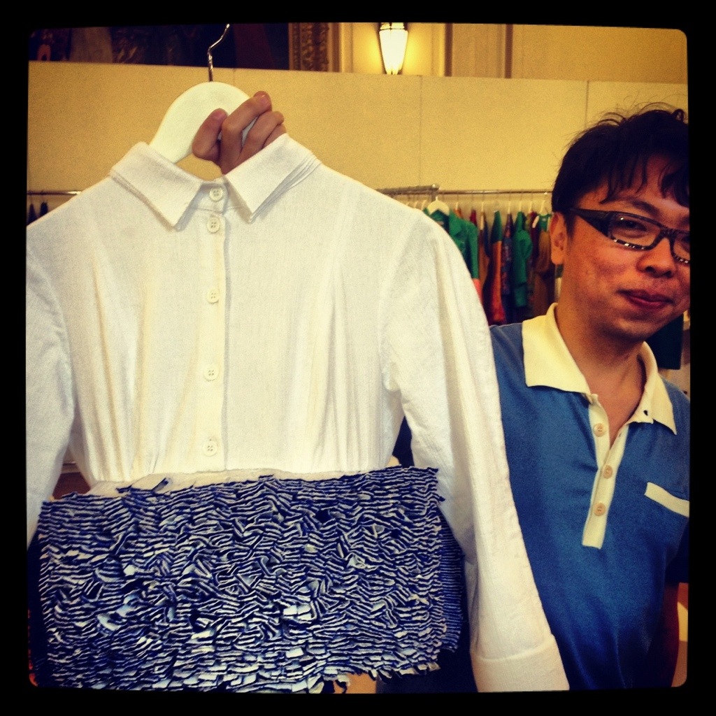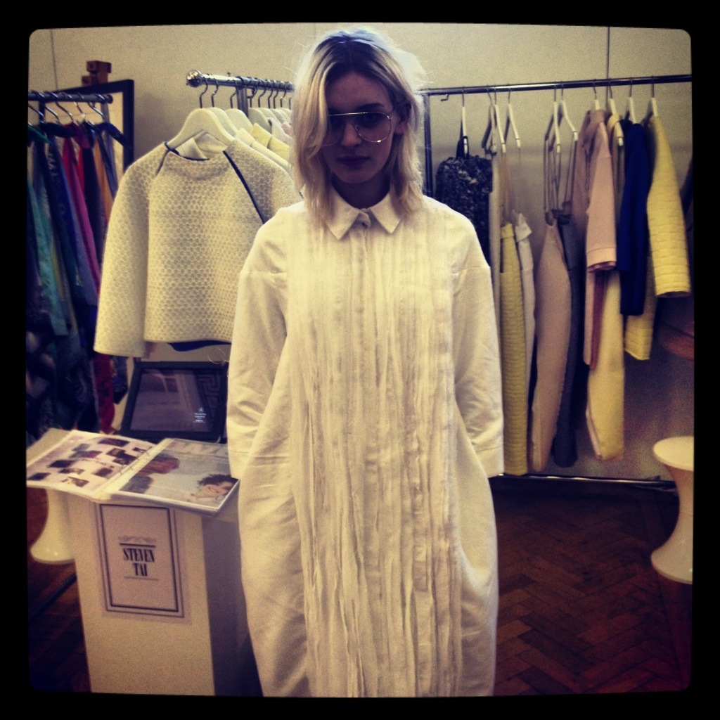 We made a pit stop at the Vauxhall exhibitions to check out some of the emerging talent on display. My favourites included Steven Tai’s work which focuses on layering, in the extreme, the shirt Steven’s holding below weighs about five Kgs!
