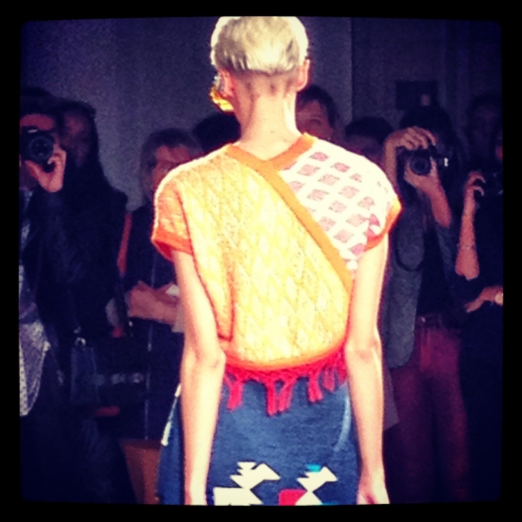 Bright and bold was the tone for Tuesday morning at the Leutton Postle show, with funky prints, tassels and fun takes on geometry.