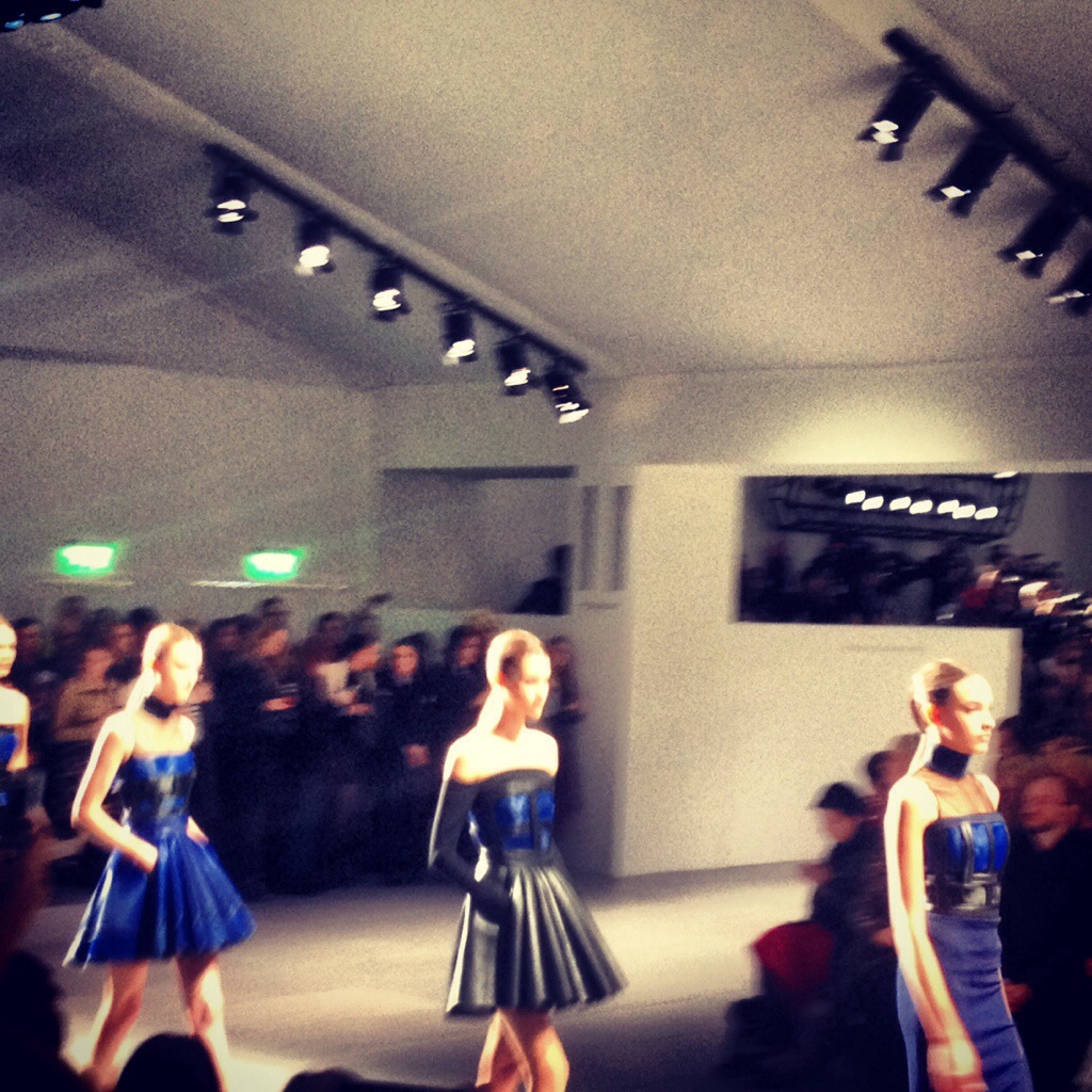 Dear dairy… Day four at London Fashion Week, or “Mega Monday” as the media have dubbed it, was a mixed bag of events. With the giant Burberry show catching everyone’s attention I couldn’t help feel a little sorry for the other, completely overshadowed, designers. I headed back to Somerset House for the David Korma show which was very much to my tastes. The designer’s signature style was evident and the show built on shillouettes and ideas seen in previous seasons. Structured bodices were combined with full circle skirts in stiff futuristic fabrics. The collection was predominantly black with a flash of fabulous purple and electric blue to kick start the show. The evening was a very different state of affairs. I attended the Eco Luxe event, a group show featuring Eco friendly, ethical or aware brands from across the globe. Offerings from as far as New Zealand and Cambodia showcased everything from up-cycled outfits, bags made from cork and Raincoats made from broken umbrellas. The show was certainly food for thought and highlighted some good causes. But with so many designers the show timing dragged and with the hectic fashion week schedule we unfortunately couldn’t stay the entire length. I guess that why they call it slow fashion.