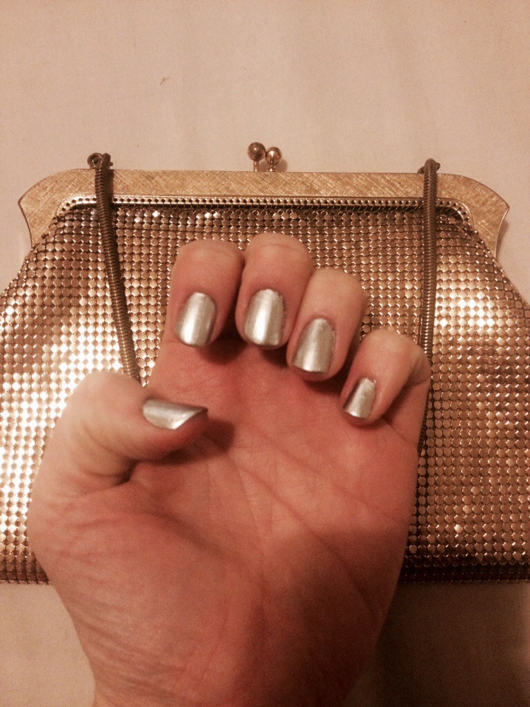I wasn’t a fan of this colour, it requires many layers to reach a good opacity, and still the polish shows the brush marks. It also gets dirty looking very quickly, and seems particularly susceptible to picking up ink stains from newspapers. Check out the results below to see the look. (Images shot with my vintage gold Oroton purse)
