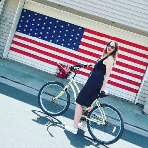 I’ve been quiet on the blog front for a while now, and with good reason. I’ve had a major change in my life, leaving London after 6+ years and making a big move to Los Angeles. As you can imagine I’ve been super busy packing up my life and getting organized, but I’m back now and will be blogging with a vengeance! Now that I’m in the “never raining” city I’m adjusting to a very different style of dressing. To be honest, I have always been an autumn and winter clothing fan, I love boots, jackets, orange everything and mid length skirts, so a mostly summer wardrobe is a bit of a challenge – especially after so long spent in rainy London. There will be some new additions to the wardrobe in upcoming posts, but for now, check out me trying to ride a bike in a mid length denim overall dress in the peak of summer heat… completely unprepared.